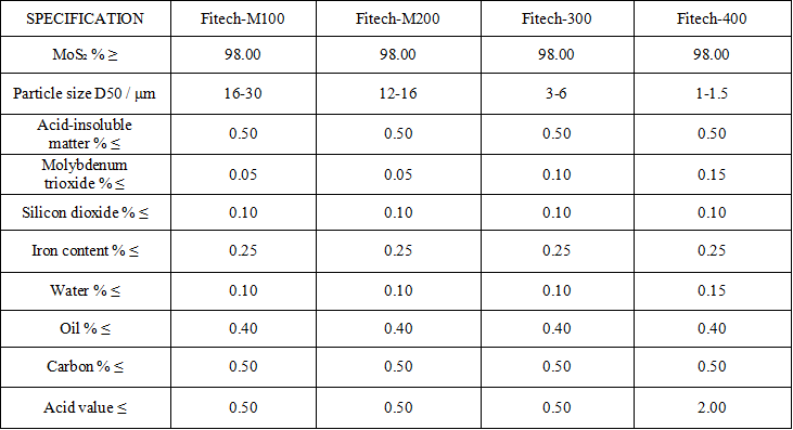 Дисульфид молибдена (MoS₂) — это чёрное чешуйчатое твёрдое вещество с плотностью 4,8 г/см³ и коэффициентом трения 0,03–0,15. Он обладает высокой термической стабильностью и химической инертностью и широко используется в смазочных материалах, автомобилестроении, аэрокосмической отрасли и машиностроении.
